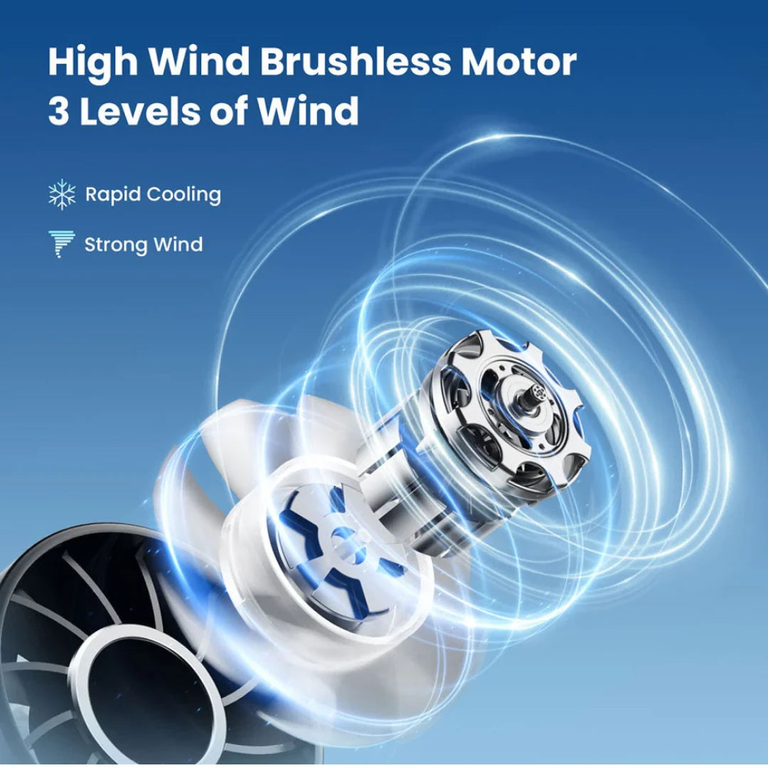 It can be used for 5-7 hours after two hours of charging. 7 fan blades provide cool breeze, wind speed can be adjusted in three levels. We recommend charging the electric fan for more than two hours before using it for the first time.